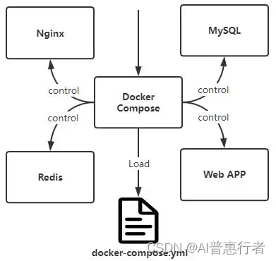 使用 Docker Compose 管理多个容器应用。Compose 通过一个配置文件来管理多个Docker容器,在配置文件中,所有的容器通过services来定义,然后使用docker-compose脚本来启动,停止和重启应用,和应用中的服务以及所有依赖服务的容器,非常适合组合使用多个容器进行开发的场景。