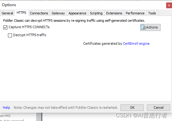 为了能够查看HTTPS流量的内容,Fiddler需要配置为解密加密的流量。在“Tools”菜单中选择“Options”,在弹出的选项窗口中,找到“HTTPS”选项卡,勾选“Decrypt HTTPS traffic”。可能需要安装一个根证书,以允许Fiddler作为中间人来解密流量。