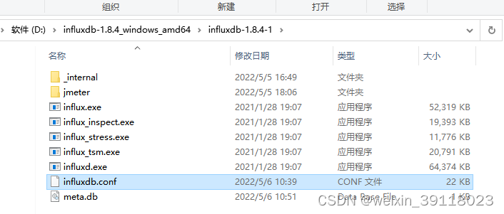 1、Influxdb是一种时序数据库,用来存放监控数据;我们需要搭建这个时序数据库服务,用来存放监控jmeter执行结果