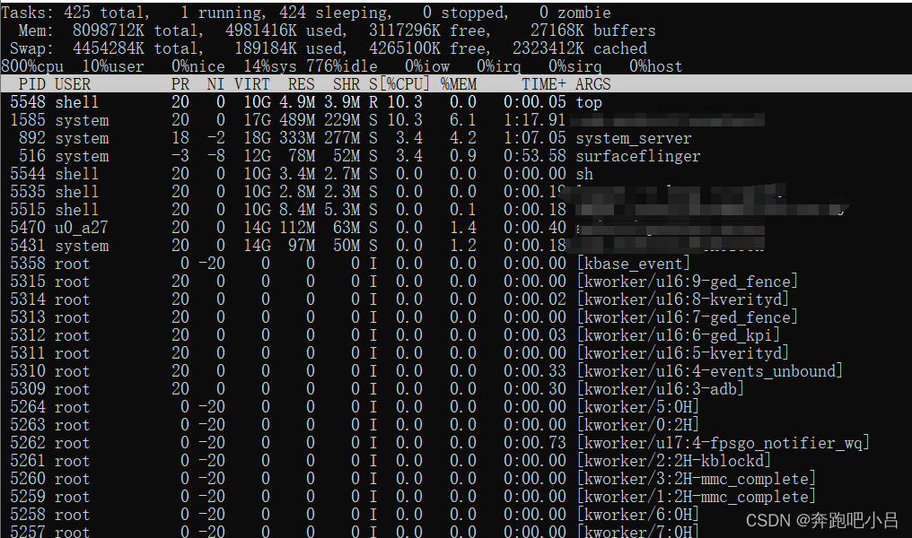 5、top命令 用于动态监视进程活动与系统负载等信息