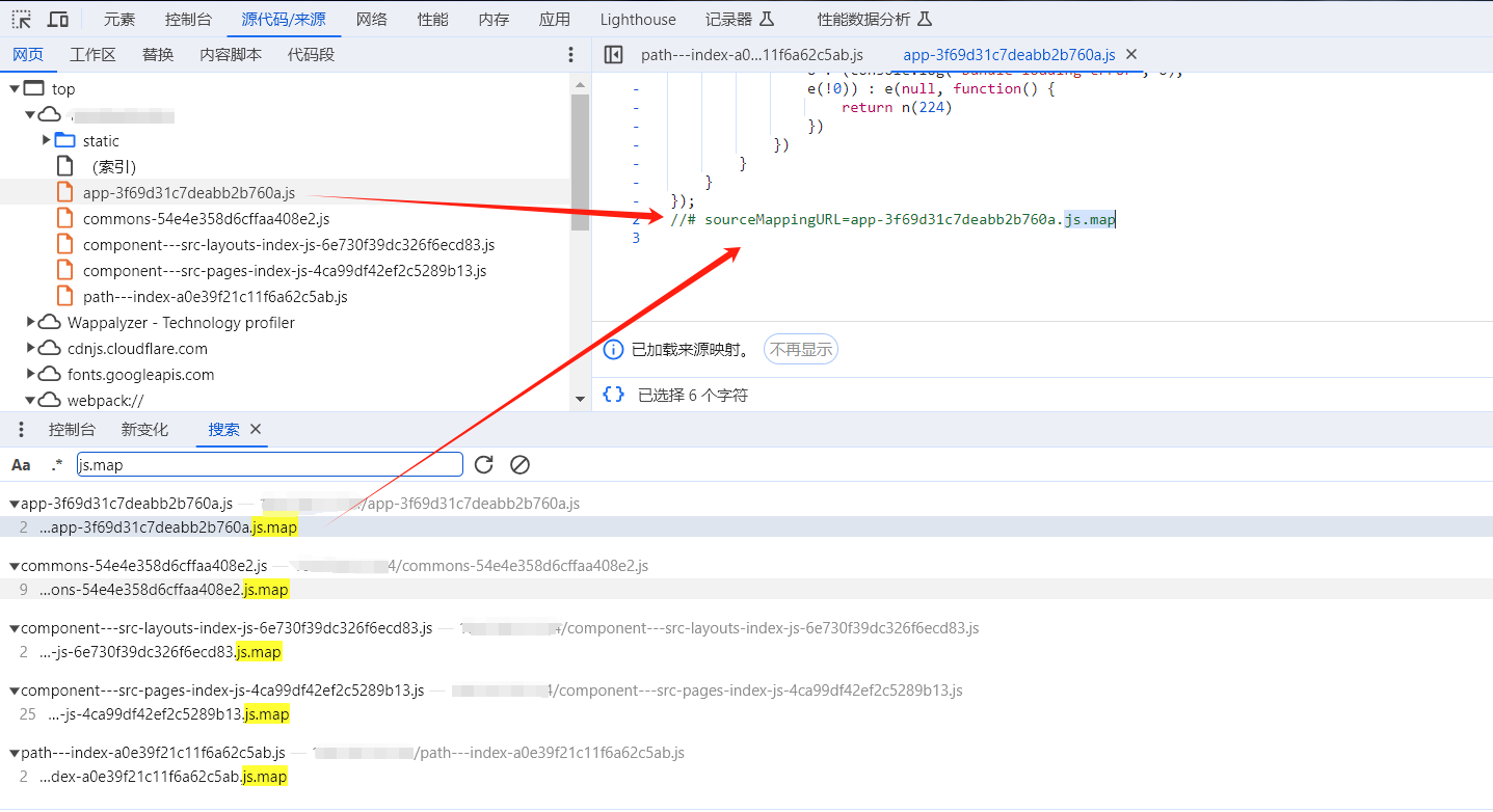 直接查看网站的 js 文件,可以在末尾处看到均有 js.map 文件名: