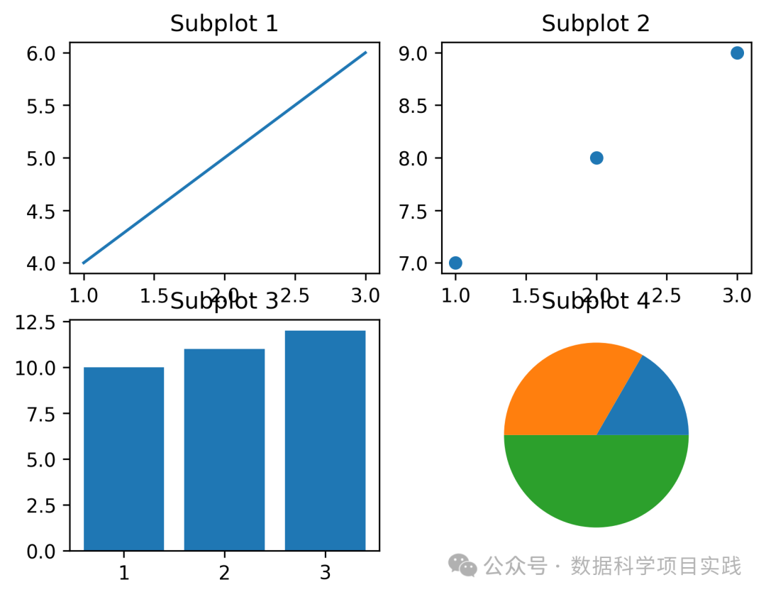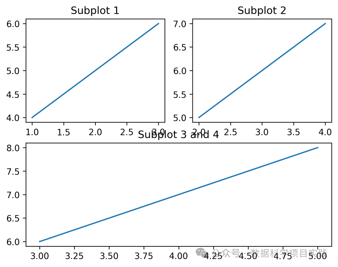 假设之前已经有一些子图布局,现在想在特定的子图上进行一些操作,可能会用到这种方式。比如假设已经有一个 2x2 的子图布局,现在想在第 3 个子图上添加一些内容: