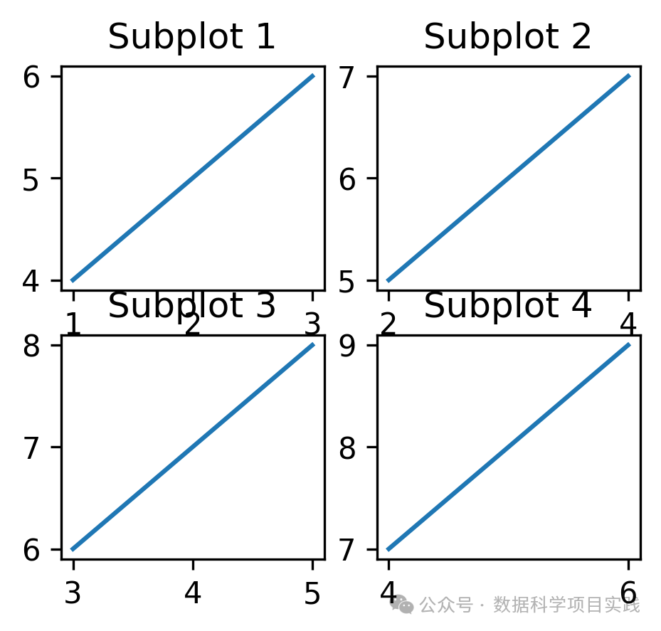 pos是一个三位整数,格式为nrows*100 + ncols*10 + index。例如,在一个2行2列的布局中,第一个子图可以用subplot(221)来创建,等同于subplot(2, 2, 1)。这种方式更加简洁,但可读性可能稍差一些。