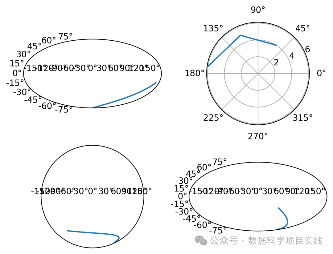 2. projection:指定子图的投影类型,可以是 None(默认值,结果为 'rectilinear' 投影)、'aitoff'、'hammer'、'lambert'、'mollweide'、'polar' 等字符串,也可以是自定义投影的名称。 |
