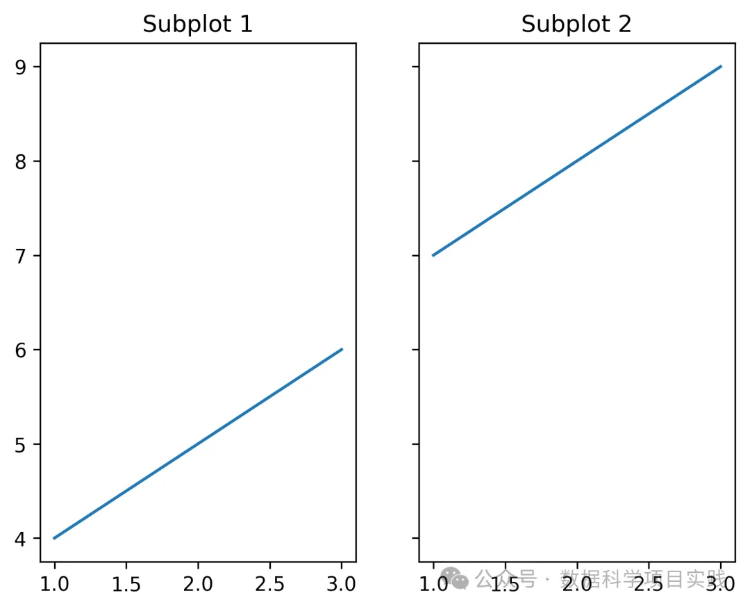 sharey可以是一个Axes对象,用于指定与该子图共享 y 轴的轴。共享后,轴将具有相同的限制、刻度和比例。