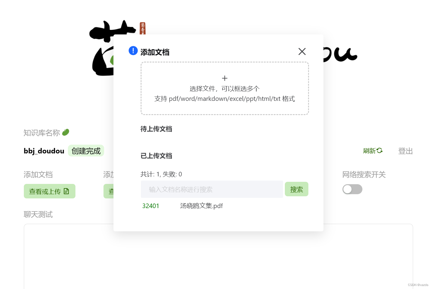 部署InternLM Studio“茴香豆”知识助手(lesson 3)作业 3.从网络上搜关于汤晓鸥老师的生平和各种相关信息,整理出一篇《汤晓鸥文集》,pdf格式。完成不少于 400 字的笔记 + 线上茴香豆助手对话截图(不少于5轮)在 InternLM Studio 上部署茴香豆技术助手,已完成。在茴香豆 Web 版中创建自己领域的知识问答助手,已完成。4.将《汤晓鸥文集》文件,通过茴香豆web页面上传。1.创建知识库bbj_doudou;6.跟茴香豆助手进行了对话。5.简单设置了一下正反例;2.进入新创建的知识库;