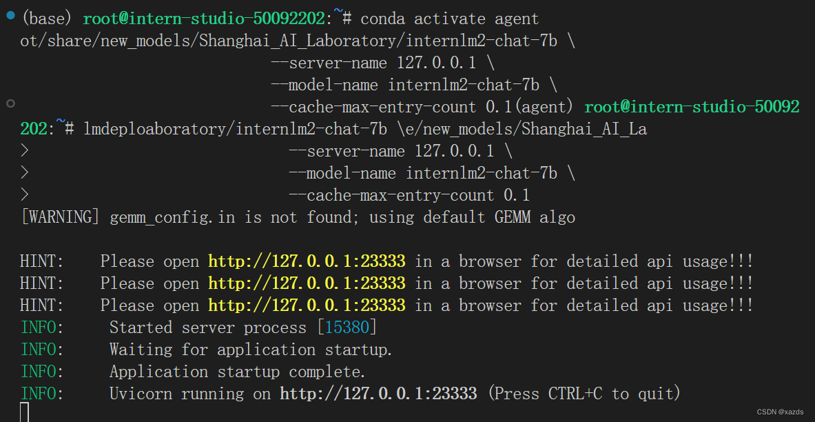 书生·浦语大模型实战:LMDeploy 量化部署 LLM & VLM 实践(lesson 5) LMDeploy 由 MMDeploy 和 MMRazor 团队联合开发,是涵盖了 LLM 任务的全套轻量化、部署和服务解决方案。核心功能包括高效推理、可靠量化、便捷服务和有状态推理。LMDeploy开发了Continuous Batch,Blocked K/V Cache,动态拆分和融合,张量并行,高效的计算kernel等重要特性。InternLM2推理性能是vLLM的 1.8 倍。•LMDeploy支持权重量化和k/v量化。4bit模型推理效率是FP16下的2.4倍。