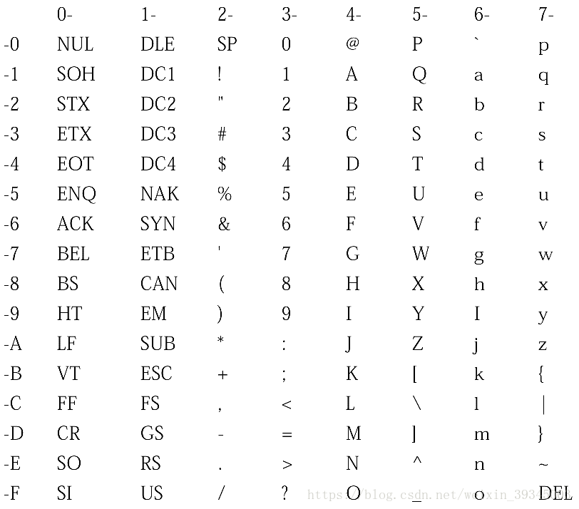 美国信息交换标准码(ASCII:American Standard Code for Information Interchange)起始于50年代后期,最后完成于1967年。开发ASCII的过程中,在字符长度是6位、7位还是8位的问题上产生了很大的争议。从可靠性的观点来看不应使用替换字符,因此ASCII不能是6位编码,但由于费用的原因也排除了8位版本的方案(当时每位的储存空间成本仍很昂贵)。这样,最终的字符码就有26个小写字母、26个大写字母、10个数字、32个符号、33个句柄和一个空格,总共128个字符码。ASCII现在记录在ANSI X3.4-1986字符集-用于信息交换的7位美国国家标准码(7-Bit ASCII:7-Bit American National Standard Code for Information Interchange),由美国国家标准协会(American National Standards Institute)发布。图2-1中所示的ASCII字符码与ANSI文件中的格式相似。