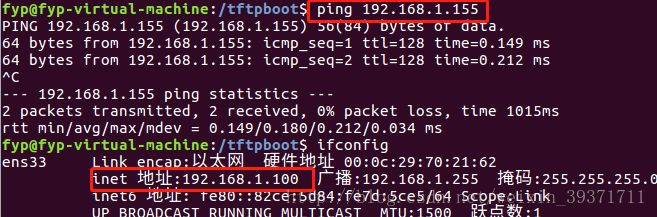 这里,虚拟机的地址是192.168.1.100;pc端地址是192.168.1.155