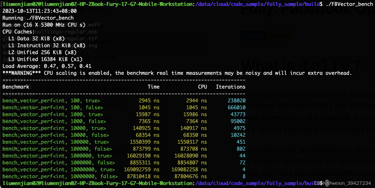 Folly 无论从理论实现上还是性能测试中,fbvector的性能均优于std vector;fbvector对内存管理上更加细粒,并且fbvector也广泛应用于一些对性能要求较高的工程上面。folly依赖于C++14,对于一些低版本的C++项目适配可能会存在问题;folly编译产物默认是静态链接库,在一定程度上会增加可执行文件的内存,也不利于OTA;关于第二点,项目ISSUE中也有讨论,可能在真正使用中应该进行一些必要的评估。