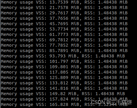 按需分页(Demand Paging) Linux操作系统使用一种称为按需分页(Demand Paging)的内存管理策略。这种策略的主要思想是只有当程序真正需要使用某段内存时,才会将这段内存分配给程序。当程序请求分配内存时(比如通过malloc函数),操作系统并不会立即为其分配物理内存,而是先在虚拟地址空间中“预留”一块区域,等到程序真正访问这块内存时(比如通过读写操作),才会将物理内存分配给它。具体表现为当使用malloc申请内存时,如果部队申请到的内存作操作则不会为其分配物理内存,测试code如下;每次申请8M内存,打印VSS和RSS。