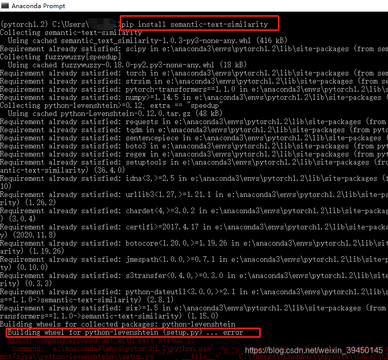 报错:Building wheel for python-levenshtein (setup.py) ... error