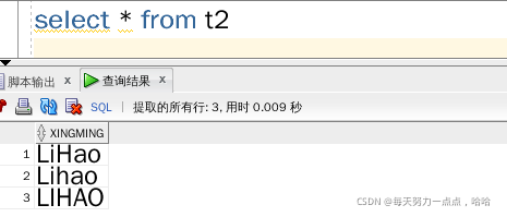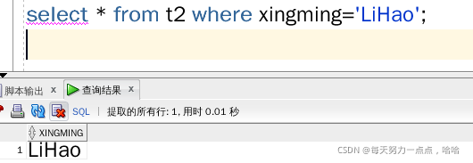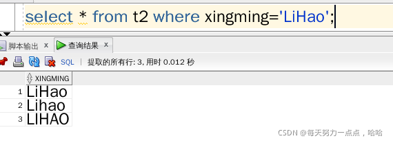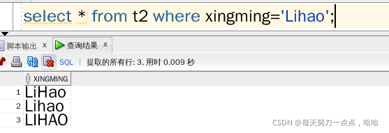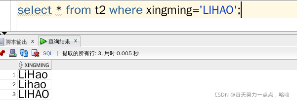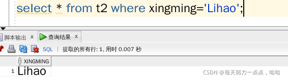select * from t2 where xingming='LIHAO';