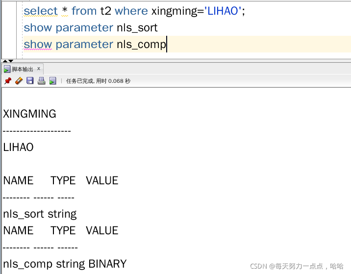 本文探讨了SQL查询在区分大小写情况下的应用,通过示例展示了如何使用`ALTER SESSION`命令设置`NLS_SORT`和`NLS_COMP`参数以影响查询行为。内容包括对`SELECT`语句的展示,以及查询结果的比较,同时展示了如何查看当前的`NLS`参数设置。