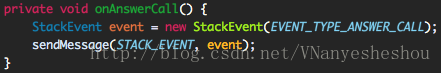 在onAnswerCall()中发送消息(消息类型STACK_EVENT,StackEvent事件类型EVENT_TYPE_ANSWER_CALL)向状体机,此时通话尚未接通,audio没有连接,所以此时处于Connected状态。状态机收到该消息后调用processAnswerCall()函数。processAnswerCall()代码如下: