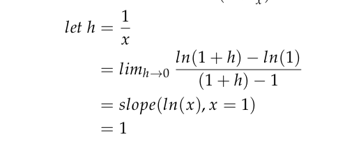 加星号的那一步可能有些难以理解,但实际上,只是一个小小的技巧。分子上,我们在“ln”里面同除以“x”;分母上,我们加了一又减了一,实际上并没有变。定睛再看一眼,你会发现这样的形式和之前的斜率十分相似。