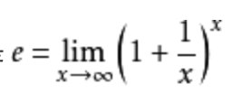 其次,学过极限的读者们可能会知道关于e最著名定义,“x趋向于无穷时,(1+1/x)^x这个函数的取值约等于2.718281828459045...”,e 和我们熟悉的圆周率 pi 一样,是一个超越数。