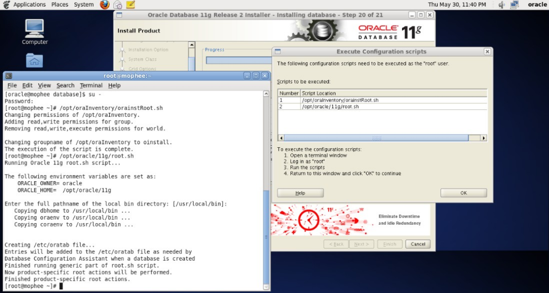图-25 以root身份登录执行那两个sh文件,如上图左下角。执行完成后,点击OK,就大功告成了。