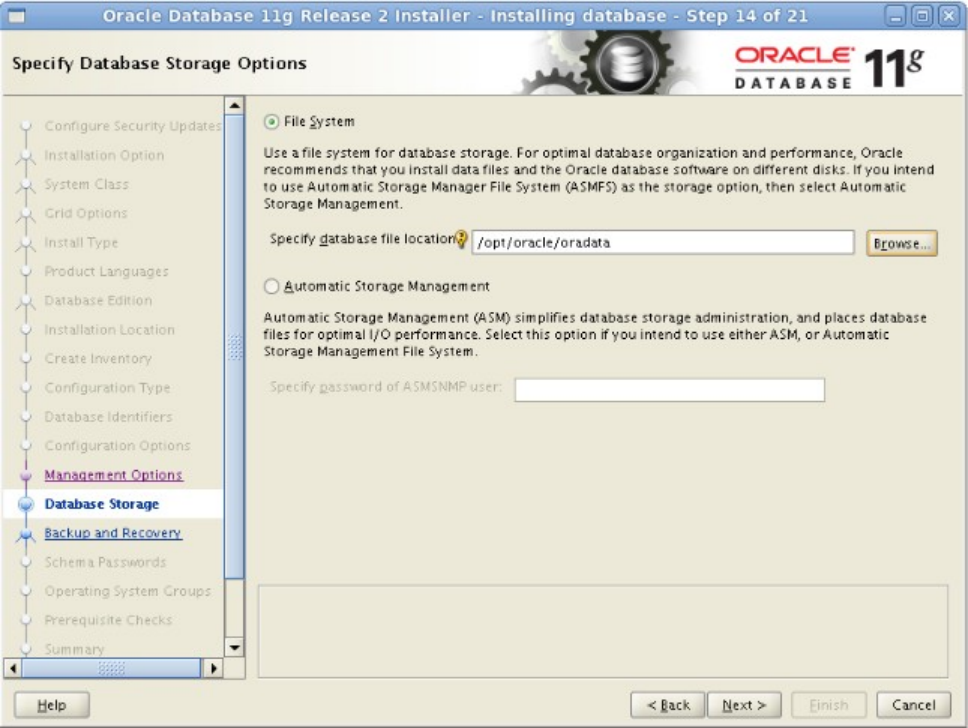 图-15 此步可选择数据文件的存储方式,我选了简单的文件系统,点击next