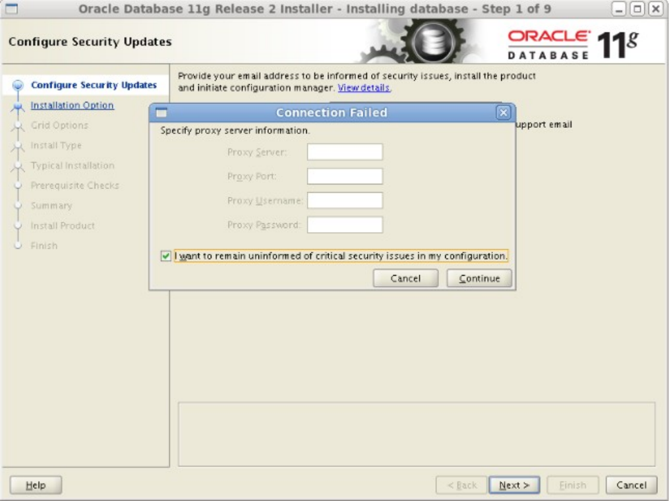 图-2 由于我的安装机没连通外网,所以提示我设置代理。选中复选框,点击Continue