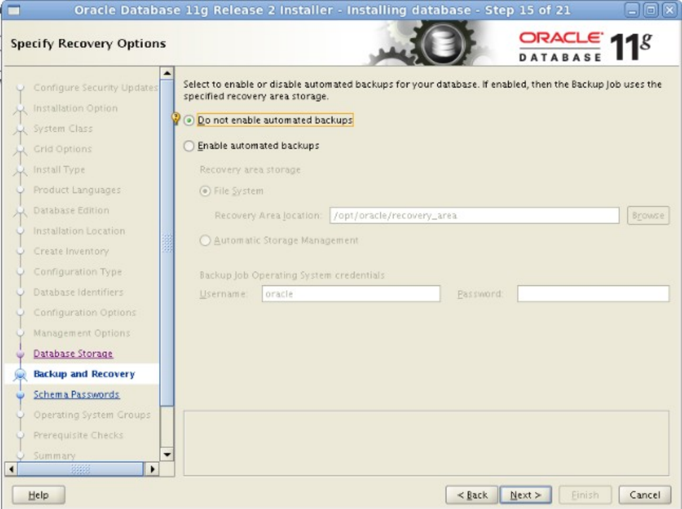 图-16 是否启用自动备份,在生产环境还是启用的好,点击next