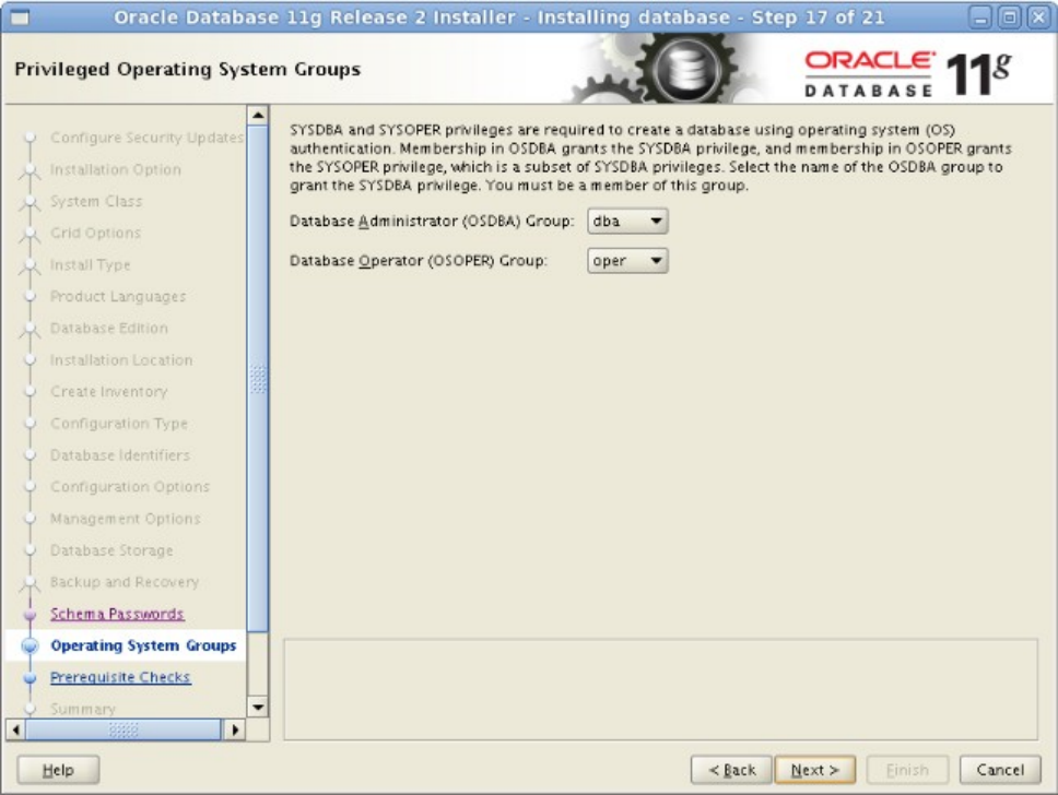 图-18 选择DBA帐号所属群组(可使用conn / as sysdba登录数据库)和oper帐号所属群组,点击next