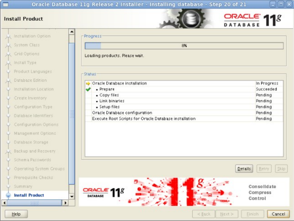 Oracle 11g R2的安装包被压缩成两个文件:linux.x64_11gR2_database_1of2.zip、linux.x64_11gR2_database_2of2.zip,将它们上传到安装机器上,并使用 unzip linux.x64_11gR2_database_1of2.zip; unzip linux.x64_11gR2_database_2of2.zip; 进行解压缩,将得到一个名称为 database 的目录。我把它放在 /home/oracle/database 中。