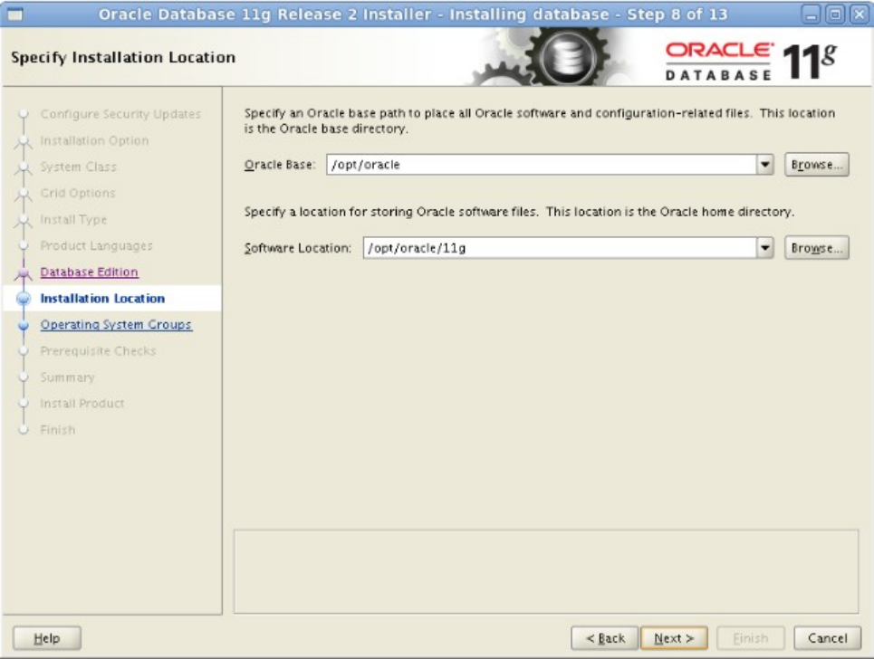 图-9 安装基目录和Home目录,由于我们已设置好环境变量ORACLE_BASE和ORACLE_HOME,此处无需再选择,点击next (注意安装目录和之前的环境变量路径对应)