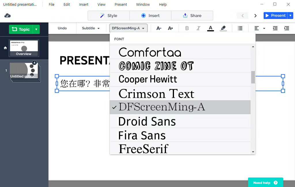 这是Prezi next自带的,任何人都可以通过这种方式输入中文,不需要使用任何其他辅助软件。这是它的优点,具有易操作性。