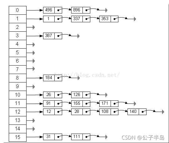 如果用hash去存这个1000个数字的话,取一个15为关键字hash表中有16个位置,这时候去存的时候就相当于把1000个数分成15分去存储,当去