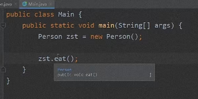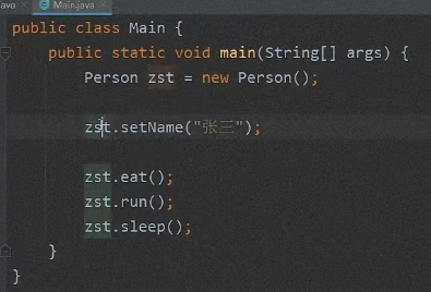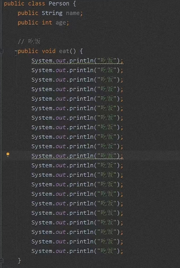 对象直接调用 eat 方法名即可,具体功能的实现是放在方法中(方法中封装了吃饭的具体实现)