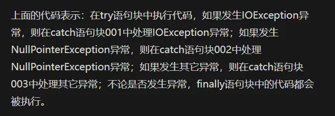 此外,Java中的try-catch语法还可以使用finally子句,用于指定不管程序是否抛出异常,都需要执行的代码