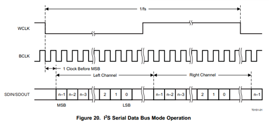 外接codec传输的为非I2S信号,需要对Wck、Bck做调整,比如接收PCM信号。