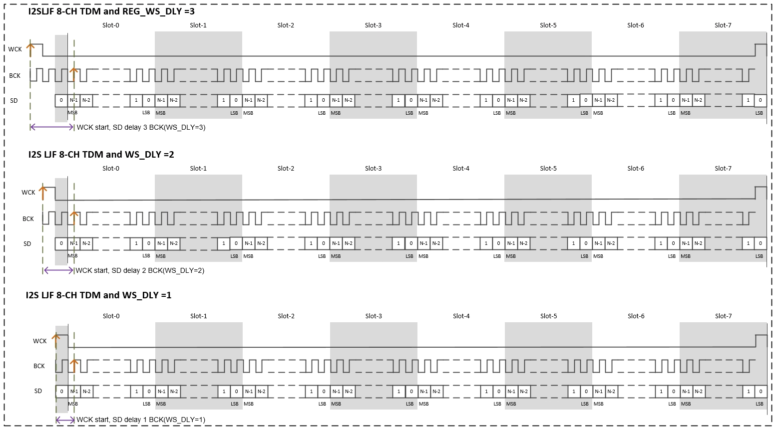 i2s-tdm-ws-width | 配置tdm WCK的宽度 | 0~31 (width = value + 1) |