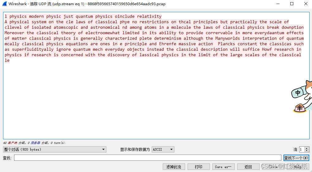 tshark -r test.pcap -Tfields -e udp.srcport | while read port; do echo -n ${port: -1}; done | tr 01 10 | perl -lpe '$_=pack"B*",$_'