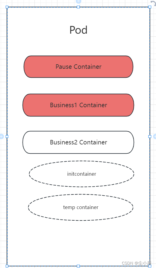 Pod由一个或者多个容器组成。这里的容器通常指运行应用的业务容器。在Pod中,除业务容器外,通常还有基础容器、初始化容器和临时容器。