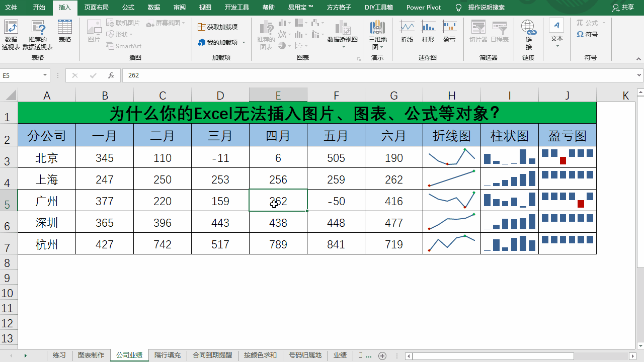 最近突然遇到一个问题:发现Excel中的【插入】选项卡中的很多功能选项都显示为灰色,无法点击了,比如图片、形状、图表、公式等等。