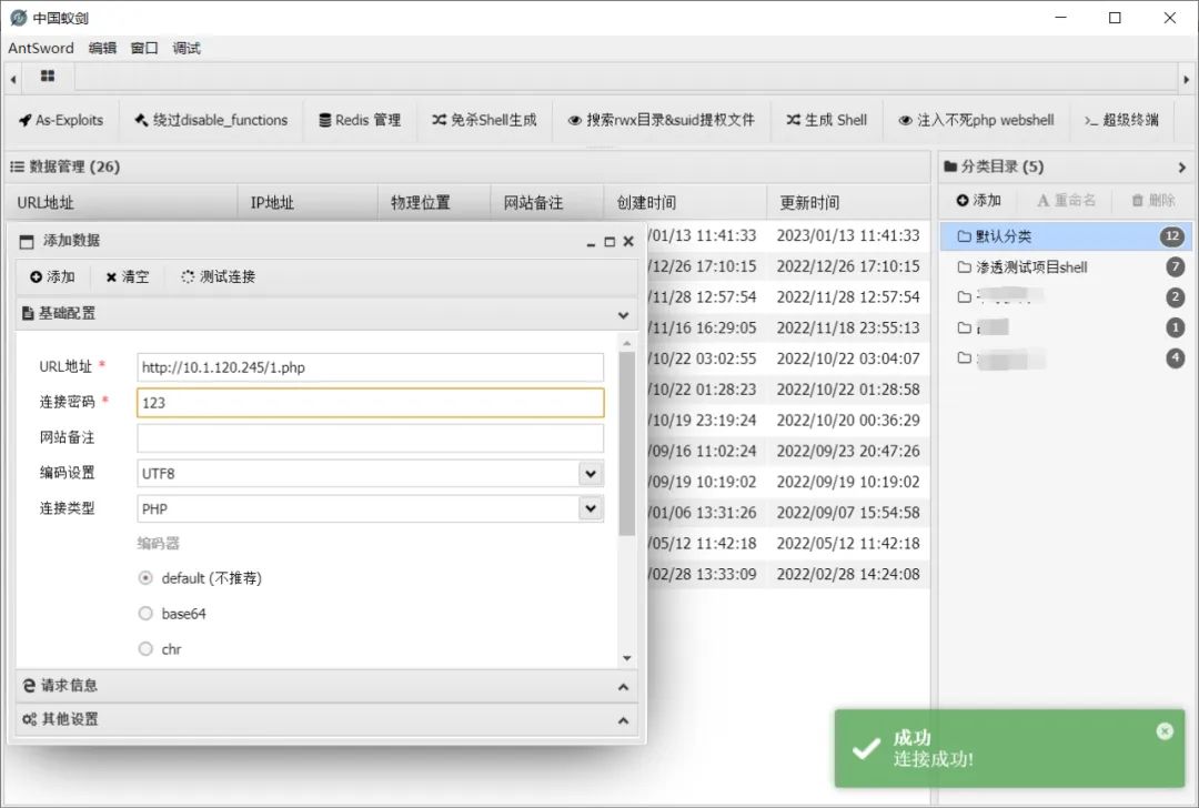 用蚁剑测试连接