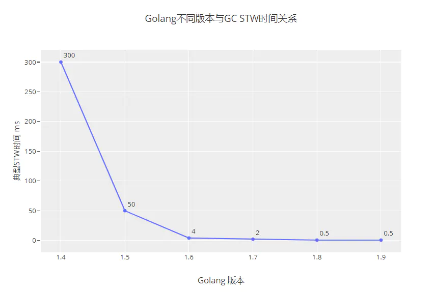 Golang 1.4-1.9 STW时间与版本关系.