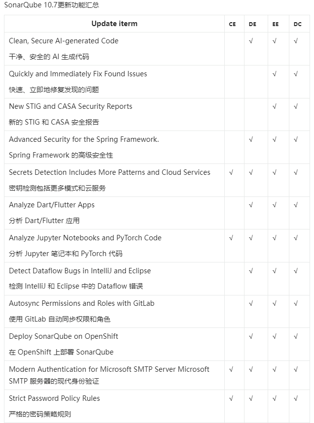 https://docs.sonarsource.com/sonarqube/10.7/server-upgrade-and-maintenance/release-notes-and-notices/release-notes