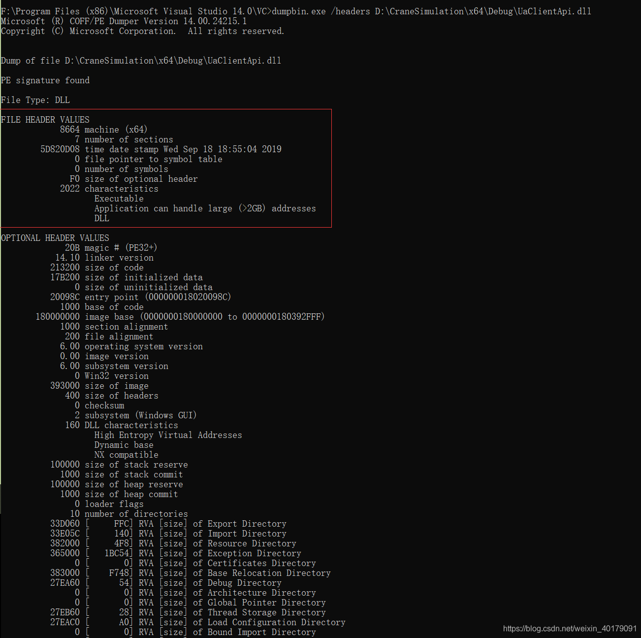dumpbin.exe /headers D:\CraneSimulation\x64\Debug\UaClientApi.dll