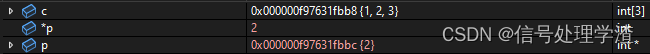 可见此时p的值没变,还是指向数组第一个元素,值为1。即实际是先取值,再将取值加1: