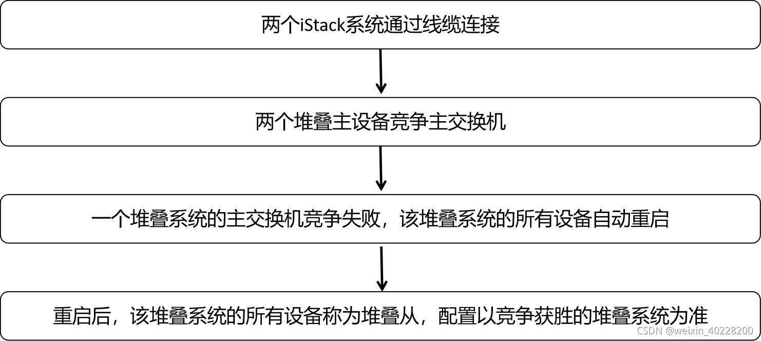 为防止出现两个相同的堆叠系统,可以使用多主检测技术进行检测,相关内容请关注我的博客,我将会在后续的文章中对此进行详细介绍。
