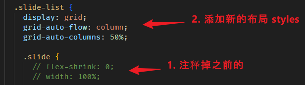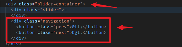 <div class="slider-container"> <div class="slider"> <div class="slide-list"> <div class="slide"> <img src="../images/yangmi.jpg" alt="yangmi"> </div> <div class="slide"> <img src="../images/tifa.webp" alt="tifa"> </div> <div class="slide"> <img src="../images/nana.jpg" alt="nana"> </div> </div> </div> <div class="navigation"> <button class="prev"><</button> <button class="next">></button> </div> </div>