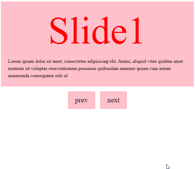 .slider-container { max-width: 512px; overflow: hidden; .slider { width: 100%; .slide-list { display: flex; .slide { flex-shrink: 0; width: 100%; img { width: 100%; height: auto; aspect-ratio: 16 / 9; object-fit: cover; } } } } .navigation { display: grid; grid-template-columns: 1fr 1fr; gap: 16px; .prev, .next { font-size: 32px; font-weight: 700; padding: 16px 24px; background-color: lightblue; color: blue; border-width: 0; cursor: pointer; &[disabled] { opacity: 0.4; cursor: unset; pointer-events: none; } } } }