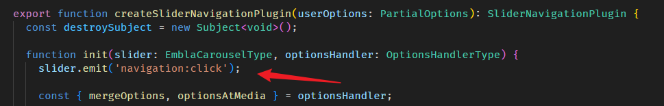 export function createSliderNavigationPlugin(userOptions: PartialOptions): SliderNavigationPlugin { // 我习惯用 RxJS const destroySubject = new Subject<void>(); function init(slider: EmblaCarouselType, optionsHandler: OptionsHandlerType) { // 关键代码都在这里... } function destroy() { destroySubject.next(); } return { name: 'navigation', options: userOptions, init, destroy, }; }