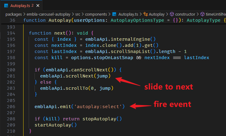 import autoplay from 'embla-carousel-autoplay'; const slider = emblaCarousel(sliderElement, { loop: true }, [ autoplay(), ]);