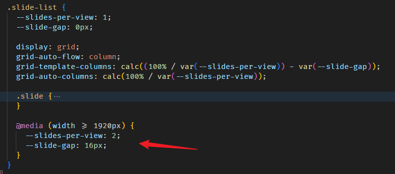 .slider { max-width: 512px; overflow: hidden; position: relative; .slide-list { display: flex; .slide { flex-shrink: 0; width: 100%; img { width: 100%; height: auto; aspect-ratio: 16 / 9; object-fit: cover; } } } .prev-btn, .next-btn { border-width: 0; cursor: pointer; position: absolute; top: 50%; transform: translateY(-50%); background-color: pink; color: red; border-radius: 999px; display: block; width: 40px; height: 40px; visibility: hidden; opacity: 0; transition-property: visibility, opacity; transition-duration: 0.4s; .icon { width: 20px; height: 20px; } } .prev-btn { left: 8px; } .next-btn { right: 8px; } &:hover { .prev-btn, .next-btn { &:not([disabled]) { visibility: unset; opacity: unset; } } } }