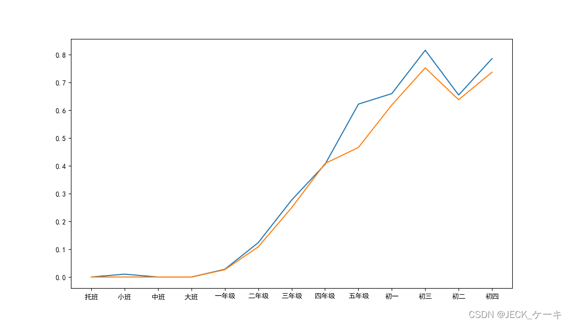 x = pd.crosstab(index = df['nianji'], columns = df['idx_of_nearSight'], normalize = 'index')[True]
