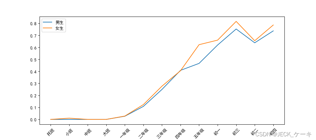 发现,小学阶段,女生近视率比男生高,一直到初中,初中阶段也是女生近视率略高,这可能是因为,女生都比男生爱学习???